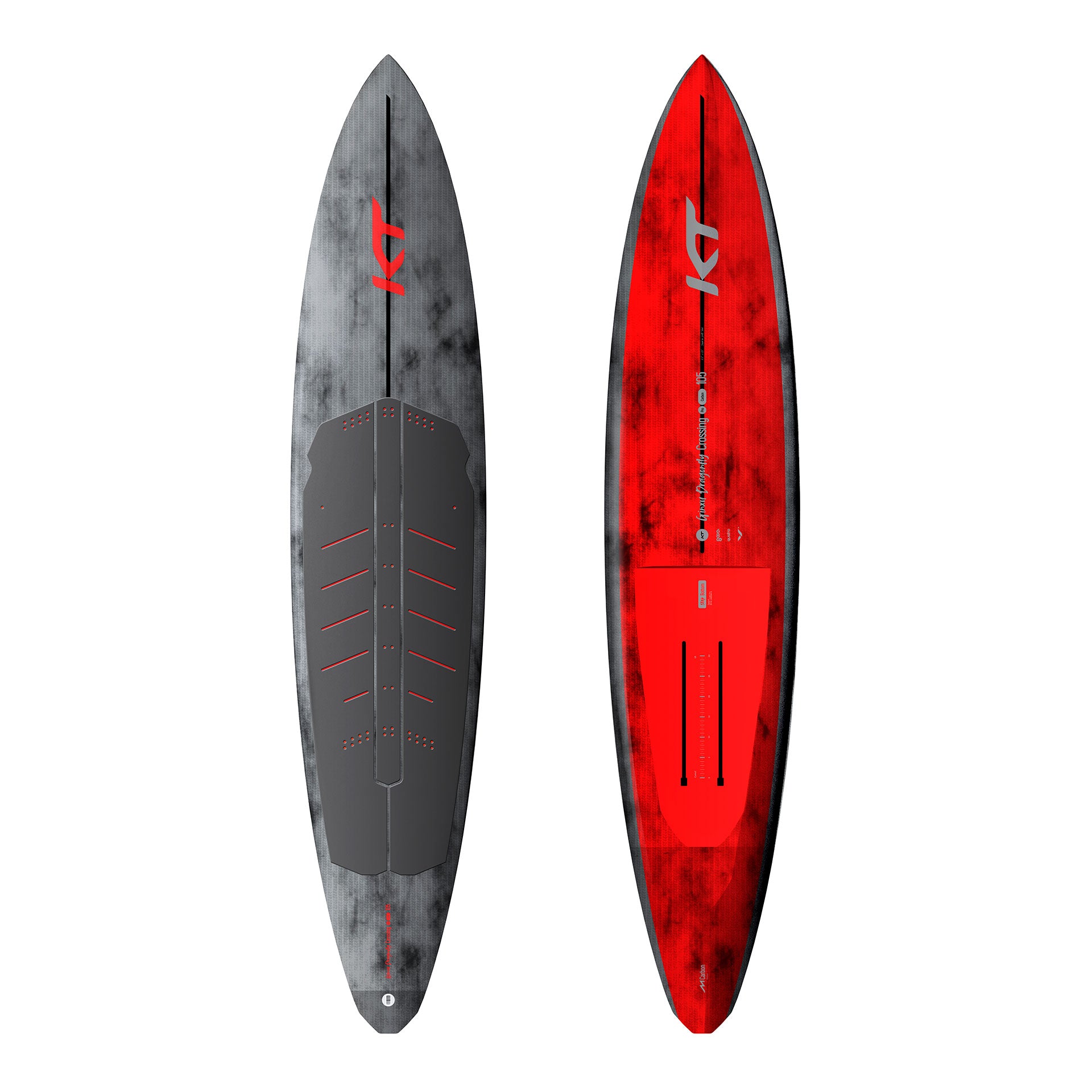 Das neu eingeführte Ginxu Dragonfly Crossing Pro Carbon wurde für Überquerungen auf offenen Ozeanen und weichere, rundere Wellenbedingungen entwickelt. Es ist länger und schmaler, mit einem neu positionierten Stufenboden (patentiert) und einer Vollverdrängungsfront. Das Crossing bietet die schnellste Gleitkontur aller KT-Boards. Mit einem neu konzipierten, revolutionären Volumenfluss verhindert die vollere Nose, dass die Nose in engen Wellen eintaucht, während gleichzeitig eine neutrale, ausgewogene Volumenverteilung über die gesamte Länge des Boards erhalten bleibt. Ausgestattet mit dem charakteristischen Dragonfly-Kick-Tail für mehr Spielraum und Carven, mit einem weiter nach innen versetzten Deck für Balance und ein kontrollierteres, direkteres Deckgefühl. All dies sorgt für die beste Höchstgeschwindigkeit beim Paddeln, was bedeutet, dass Überquerungen des Ozeans und Paddeln in flacheren Gewässern mit einem Wort mühelos sind.