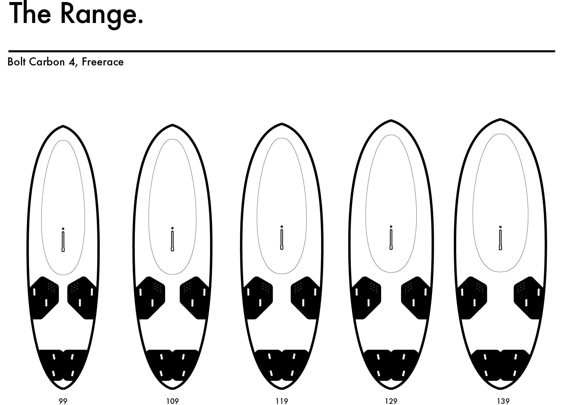 Das neue Bolt 4 Carbon ist unser schnellstes Freerace-Board aller Zeiten, und wir freuen uns über seinen ultimativen Vorwärtsdrang gepaart mit dem Komfort auf offenem Meer. Die 4. Generation vereint alles unter Ihren Füßen, sofort einsatzbereit, Rennleistung, die von jedem erlebt werden kann.