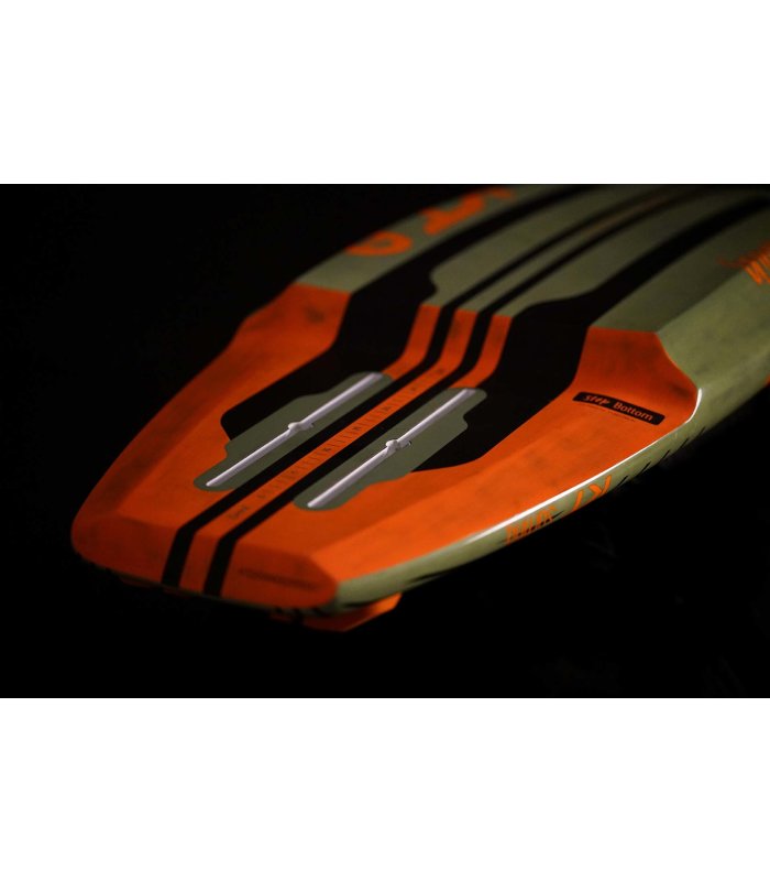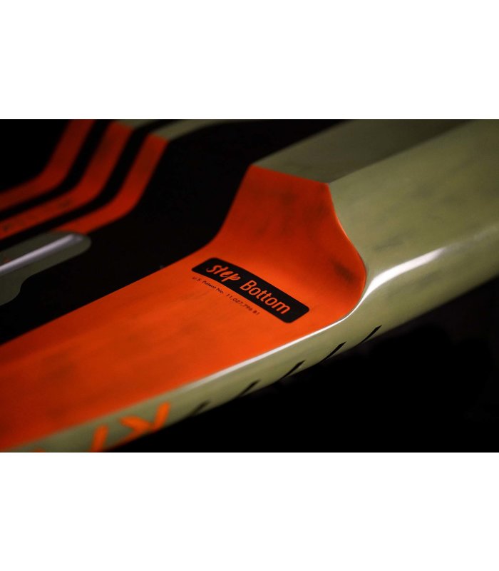 The Ginxu’s revolutionary design features the Step Bottom (patented), a cutout on the entire bottom rear 1/3 of the board, including the foil box. This creates an unprecedented connection to the foil, in fact the most direct connection of any foilboard to date. It’s like Gravity Control. For touchdowns, it reduces catching and deceleration leading to getting stuck or falling, because when the bottom of the board now recontacts the water, the rear section and foil are still ‘airborne,’ so you receive Automatic Lift and can easily take back off. Most surprisingly of all it makes it incredibly easy to initially take off, because the moment you get a little bit of speed on the water and the board starts to rise to the waters’ surface, even though the front 2/3rds of the bottom of the board is still in the water, the foil is already out of the water and flying, creating an Ultra Boost, getting you going much quicker than traditional designs.